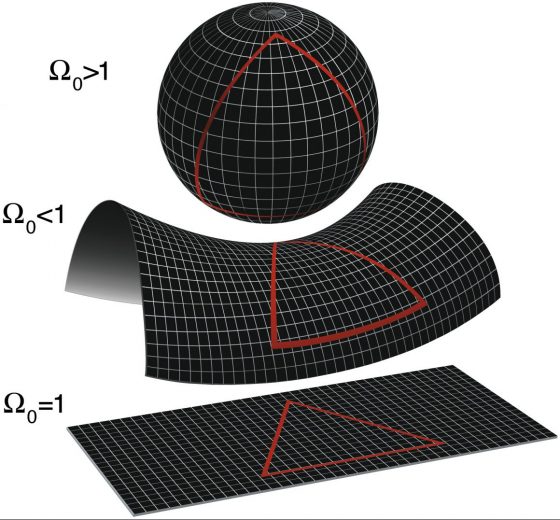Según la teoría general de la relatividad, todo aquello que tenga masa deforma el tejido del espacio-tiempo. Si toda la materia-energía del Universo está “plegando” el espacio, la cantidad total determinará la forma del Universo: puede ser cerrado, plano o abierto. Si la cantidad de masa por unidad de espacio superara cierta densidad crítica (unos 10-26 kilos por metro cúbico), el Universo sería cerrado; si la igualara, sería plano; si fuera inferior, sería abierto. En un Universo cerrado o abierto, la luz observada desde grandes distancias llegaría distorsionada y esta distorsión no se aprecia con los increíblemente precisos métodos actuales, así que los cosmólogos consideran que el Universo es plano. No obstante, la cantidad de materia-energía que observamos no llega a un 5% de la necesaria para alcanzar la densidad crítica: si la teoría einsteiniana es correcta, más de un 95% de la masa del Universo es invisible.